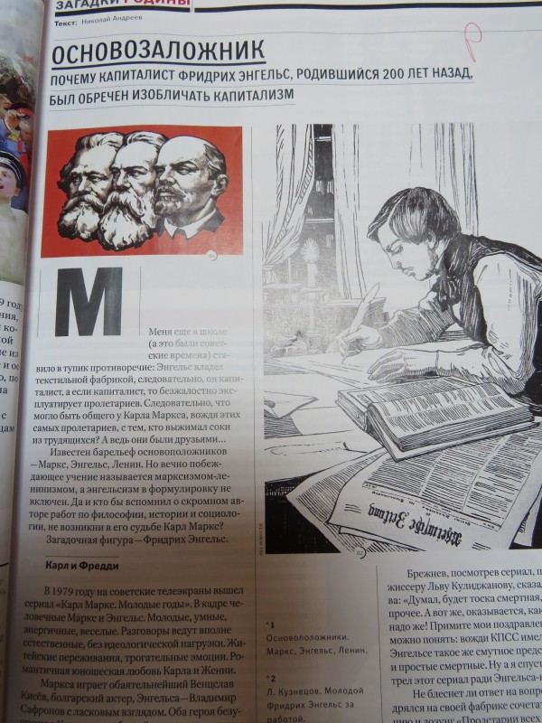 Статья Николая Андреева «Основозаложник» рассказывает о том, почему капиталист Фридрих Энгельс, родившийся 200 лет назад, был вынужден изобличать капитализм, о его взаимоотношениях и соавторстве с Карлом Марксом.