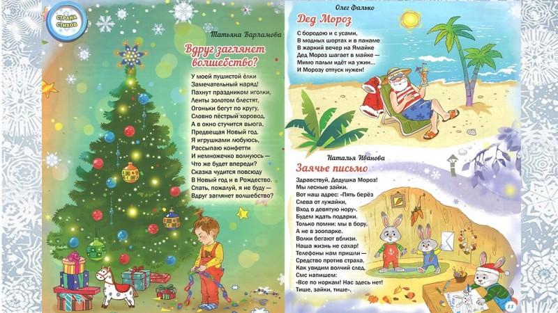 В сборник вошли самые лучшие стихи, загадки и колядки, посвященные Новому году и Рождеству. Книга поможет родителям и воспитателям организовать и провести весёлый детский праздник, познакомит с историей Нового года и Рождества. Для дошкольного и младшего школьного возраста.