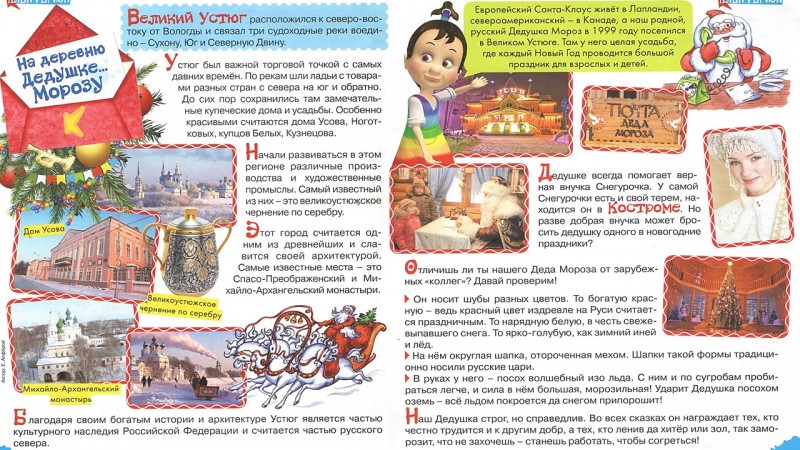 Прочитав статью из познавательного журнала для детей «Клёпа» вы узнаете интересные факты о городе в котором живёт Дед Мороз. А также вспомните какими отличительными характеристикам обладает наш сказочный зимний волшебник.