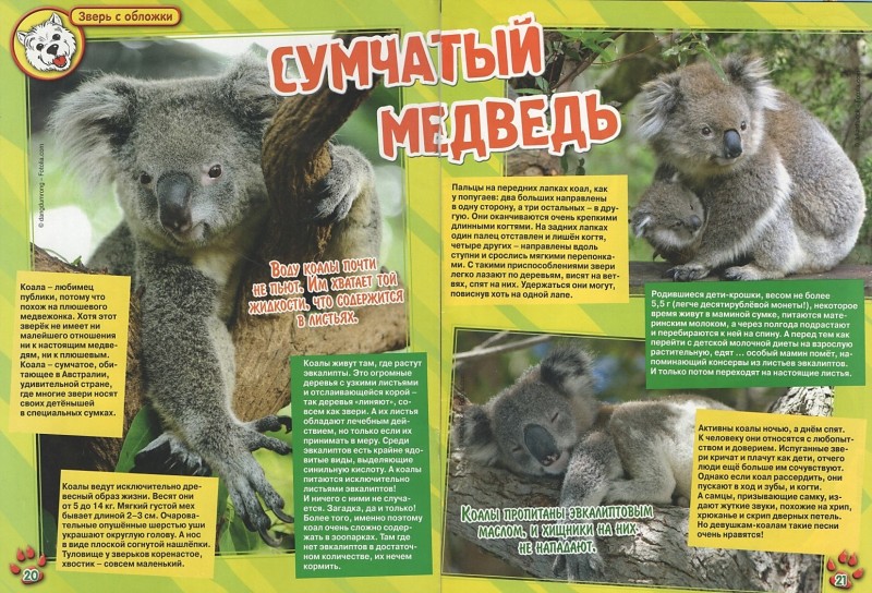 Сумчатый медведь // Тошка и компания : весёлый журнал о животных. – 2016. – № 4. – С. 20-21. – (Зверь с обложки).