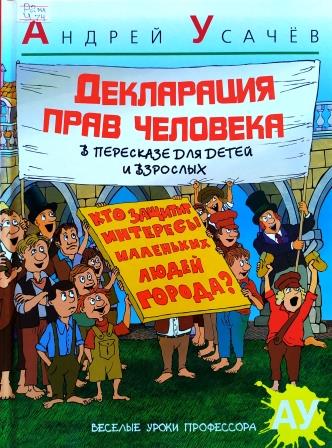 Усачёв, Андрей. Декларация прав человека в пересказе для детей и взрослых / Андрей Усачёв ; [худ. Александр Зудин]. – Санкт – Петербург : Азбука : Азбука – Аттикус, 2011. – 54, [2] с. : ил. – (Весёлые уроки профессора АУ).