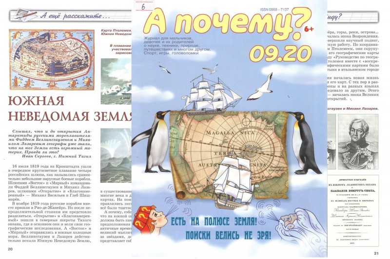Малов, Владимир. Южная неведомая Земля / Владимир Малов // А почему? : журнал для мальчиков, девочек и их родителей о науке, технике, природе, путешествиях и многом другом. – 2020. – № 9. – С. 20-22. – (А ещё расскажите…).