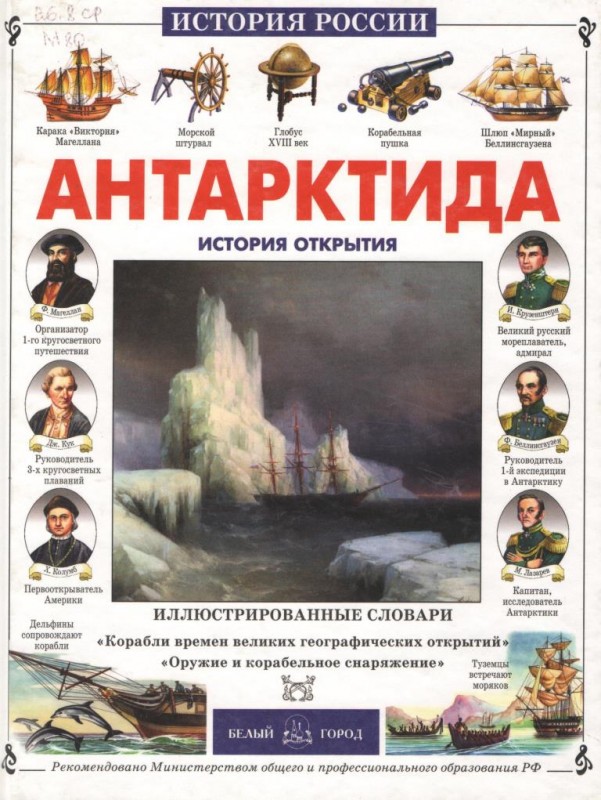 Мороз, В. В. Антарктида : история открытия : для дополнительного образования : [для младшего и среднего школьного возраста] / В. В. Мороз ; худож. Е. Орлов. – Москва : Белый город, 2002. – 42, [6] с. : цв. ил. – (История России).
