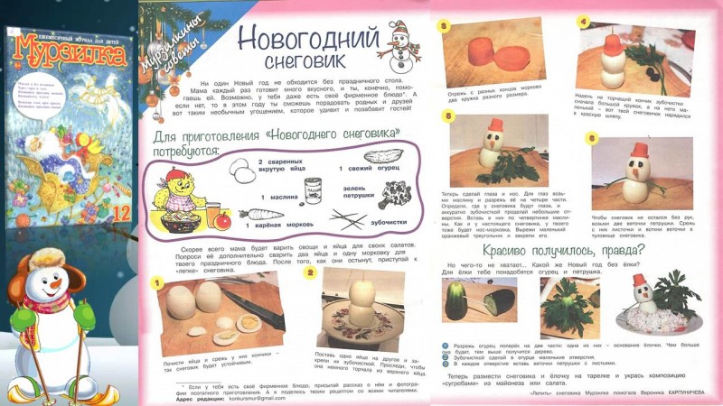 Карпуничева, Вероника. Новогодний снеговик / Вероника Карпуничева // Мурзилка : ежемесячный журнал для детей. – 2016. – № 12. – С. 11-12. – (Мурзилкины советы).