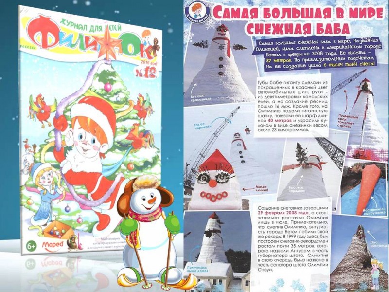 Самая большая в мире Снежная баба // Наш Филиппок : журнал для детей. – 2016. – № 12. – С. 26-27. – (А знаете ли вы?).