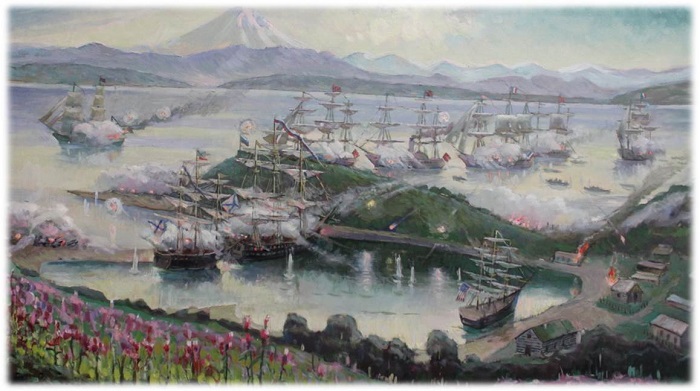 17 августа 1854 года англо – французская эскадра вошла в Авачинскую бухту, имея на судах 216 орудий и команду из 2250 человек, в которой находились «морские солдаты», т.е. специально подготовленные морские пехотинцы, обученные действовать в морских десантах. Эскадра имела боевой пароход с бомбическими орудиями большой мощности, способный передвигаться без ветра и брать на буксиры остальные суда.