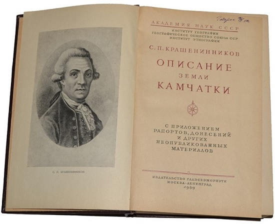 3. Крашенинников С. П. Описание земли Камчатки, сочинённое Степаном Крашенинниковым академии наук профессором. Том первый. В Санкт-Петербурге. При императорской Академии наук. 1755 году. 438 с.