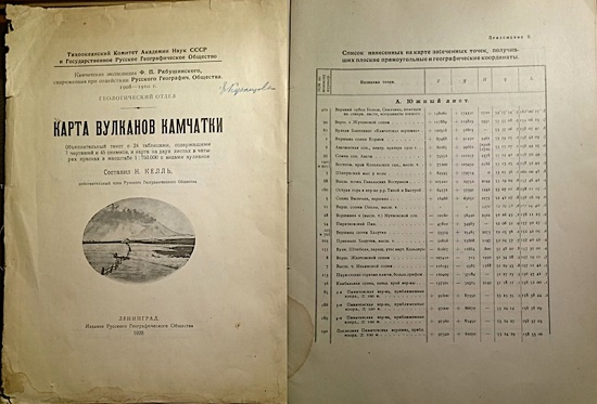 - Келль Н. Г. Карта вулканов Камчатки: Камчатская экспедиция Ф. П. Рябушинского 1908–1911 гг. // Геологический отдел. Изд. Тихокеан. Ком. АН СССР и Гос. Русск. Геогр. Общества. 1926. 76 с.