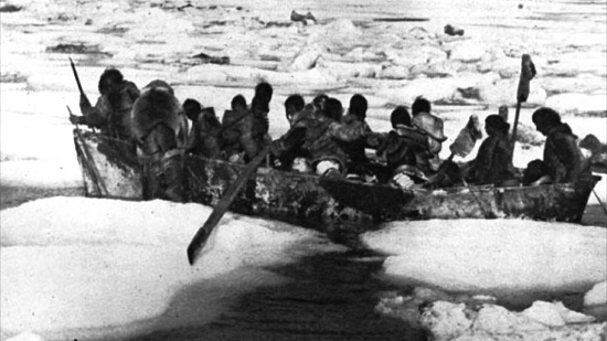 "Спасательное средство" на большой байдаре-аттэваат - небольшая лодочка, обтянутая нерпичьей кожей