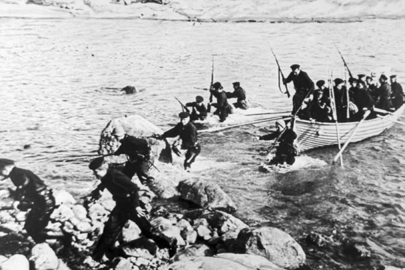 В 2.38 18 августа советская береговая батарея с мыса передового отряда десанта (батальон морской пехоты (без роты), пулемётная и миномётная роты, роты автоматчиков и противотанковых ружей, сапёрная рота, взвод химической разведки, взвод пеших разведки) под командованием заместителя командира 138-ого стрелкового полка майора Шутова. Сразу вскрылась недостаточная разведка - дно в районе высадки оказалось с крупными подводными камнями, подход плавсредств вплотную был затруднён. Перегруженные десантные войска останавливались далеко от берега (до 150 – 200 метров). И десантники с тяжёлым снаряжением вынуждены были добираться до берега частично вплавь при океанском прибое. Некоторые при этом тонули.