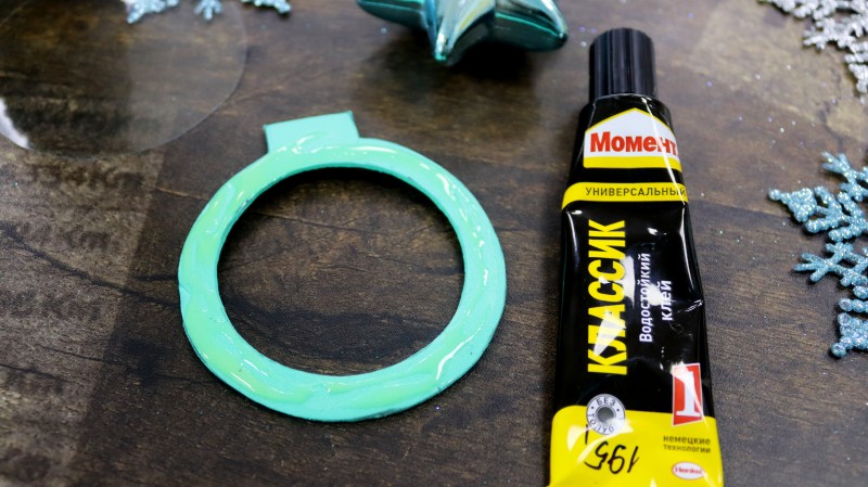 Наносим клей по краю игрушки.