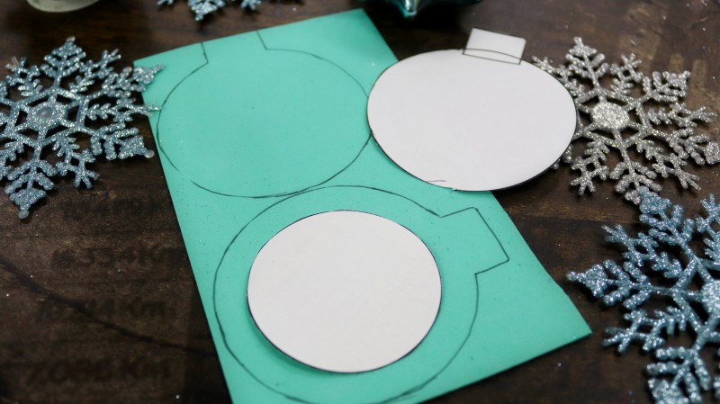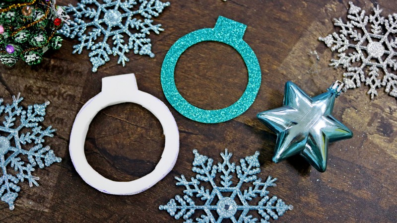 3. На блестящем фоамиране с обратной стороны обводим по шаблону нужные нам фигуры в количестве 2 штук. Внутри одной заготовки нужно обрисовать дополнительный круг посередине.