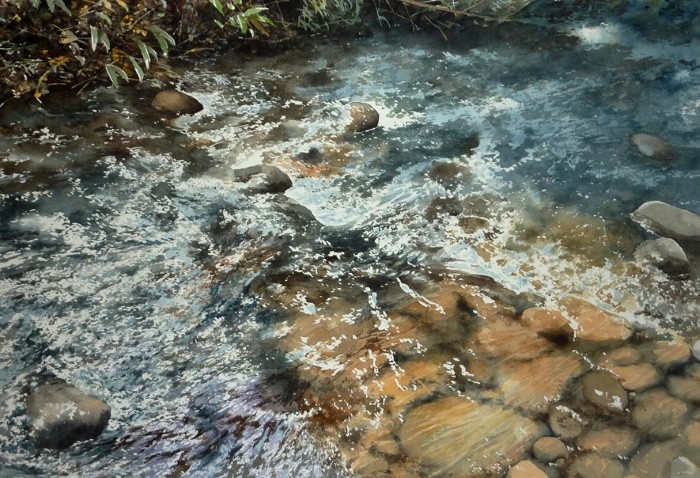 Жан-Клод Папье не стремится создать необычный образ, но простым и образным языком выражает глубину и красоту мира. Художник любит играть с мазком акварельной краски, любит игру света, воду, мягкость и легкость.