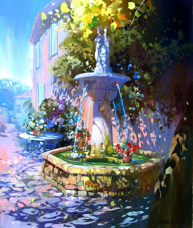Кажется, что в баночках этого художника находится не краска, а задорный солнечный свет. Мастер будто достаёт этих «зайчиков» оттуда и рассаживает в нужном порядке на своих холстах. Каких-то он собирает в кучки, а каких-то оставляет в гордом королевском одиночестве: всё зависит от композиции. На всех картинах Лорана Парселье (Laurent Parcelier) есть движение: солнечные кружочки будто танцуют и играют друг с другом.