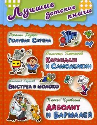 Родари Дж. Голубая стрела. Постников В.Ю. Карандаш и Самоделкин. Первые приключения. Резников А.И.. Выстрел в молоко; Бег с препятствиями. К.И. Чуковский Айболит и Бармалей. / худож. Е. Белозерцева и др. - М.: Омега, 2008. – 190 с. ил.