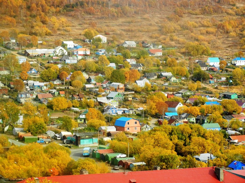 Вспоминая теперь о том дне, я мысленно благодарю Бога за прекрасную погоду, позволившую увидеть эту часть Камчатки как на ладони. Эти первые впечатления, как фотография матрицей отпечатались в моей памяти: белые кубики домов, дороги, бесконечная зелень на сопках, вулканы. Ух, красота!