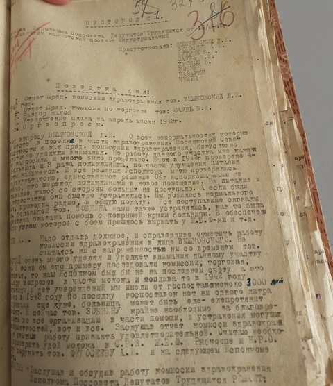 Следующее упоминание уже об условиях работы библиотеки и состоянии помещения, говорится в протоколе заседания Поселкового совета от 24 октября 1944 года. Приняты решения о ремонте крыши и улучшении состояния помещения. Здесь же есть и фамилия первой заведующей библиотеки – Филиппова. Без инициалов. Следующая запись, найденная в архиве относится к 01.01.1945 года и это «Титульный список массовых библиотек Камчатской области», где приведены следующие сведения: поселковая библиотека, пос. Индустриальный; фонд - 2950 экз., площадь помещения - 40 кв. м, и заведующая – Филиппова.