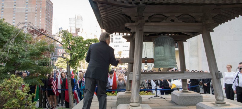 Первый Колокол Мира был изготовлен в 1954 году в знак памяти о трагедии японских городов, переживших ядерную бомбардировку. Отлит он из монет, пожертвованных детьми всех континентов, в него также вплавлены ордена и медали, другие почетные знаки людей многих стран. Установлен колокол в штаб-квартире ООН в Нью-Йорке.