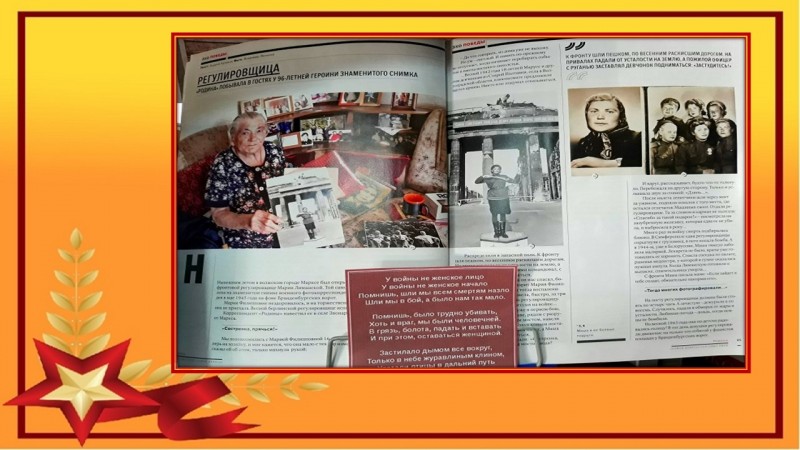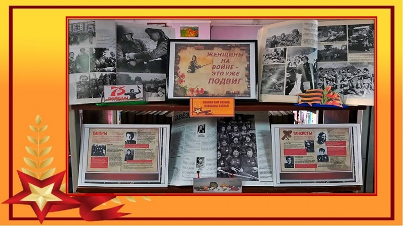 Библиотека № 5 подготовила книжную выставку «Женщина на войне – это уже ПОДВИГ», на которой представлены фотодокументы из журнала «Родина», литература о женщинах Камчатки, воевавших на войне.