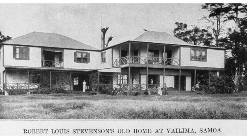 В 1889 году писатель впервые побывал на островах Самоа. Проведя в скитаниях еще целый год, изъездив вдоль и поперек Полианезию, он , наконец, ради экономии решил надолго обосноваться в тропиках. Стивенсон приобрел в собственность небольшой, живописно расположенный учсток земли, выстроил домик и безвылазно жил в нем. Свое владение он назвал Вайлима (Пятиречье).