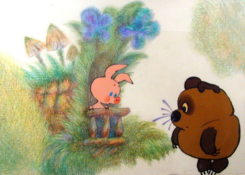 Что касается нашей страны, то самый узнаваемый образ нам подарил мультфильм-трилогия Фёдора Хитрука. Автором рисунков к нему был Эдуард Назаров. Нельзя здесь не вспомнить и о незабываемом голосе Евгения Леонова, которым Винни Пух рассказывал нам все свои сопелки, бурчалки и пыхтелки.