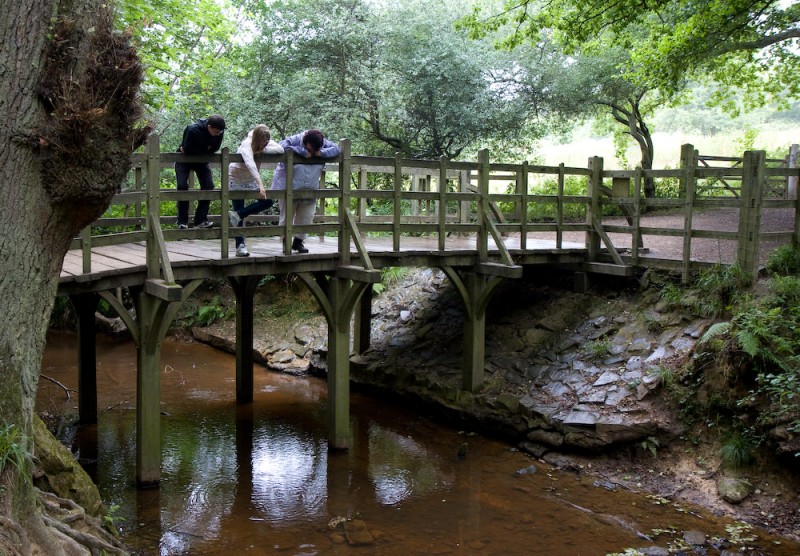 Здесь главные герои книги: Винни-Пух, Пятачок и Кристофер Робин стоят на мосту и играют в "пустяки". Посингтонский мостик, изображенный на рисунке, находится в деревушке Хартфилд-Фарм в графстве Суссекс (Юго-Восточная Англия). Он разрушился в 1970-х годах, был восстановлен в 1979 году Кристофером Милном, и полностью перестроен в 1999 году. На нем установлена табличка: "Самый важный мост в мире". Мост этот стал местом паломничества туристов и почитателей Винни-Пуха со всего мира.