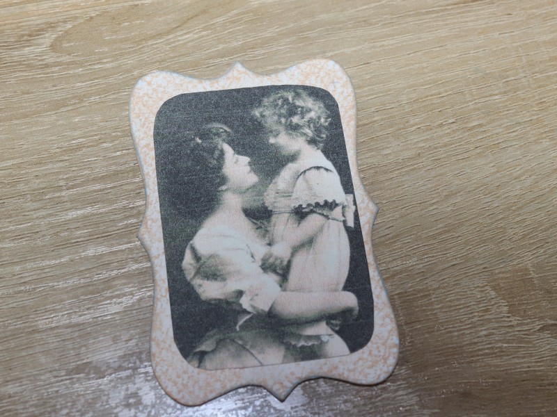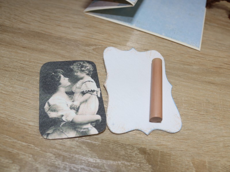 Далее приклеиваем ретро фотографию к рамке.