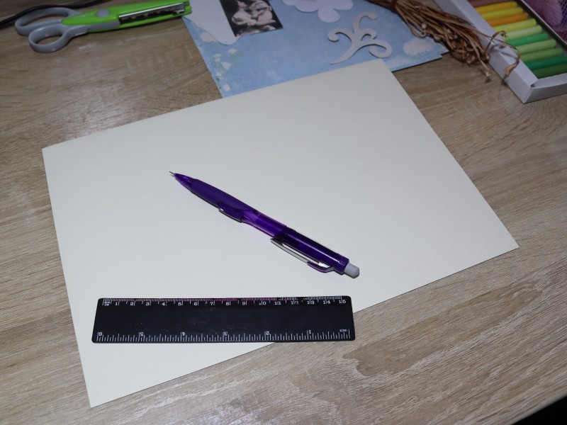 Отмеряем нужные нам размеры на скрапбумаге. И вырезаем.