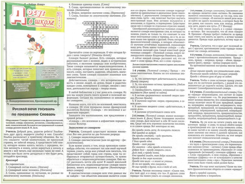 Хожаева, Т. В. Русской речи государь по прозванию Словарь / Т. В. Хожаева // Досуг в школе. – 2014. – № 3. – С. 4-7.