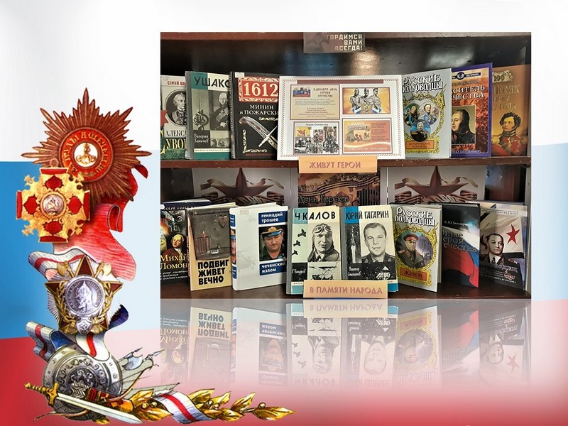 В библиотеке № 5 подготовлена книжная выставка «Живут герои в памяти народа», приуроченная к дням Героев Отечества и Неизвестного солдата. Читатель сможет познакомиться с исторической, биографической и художественной литературой о героях нашей страны.