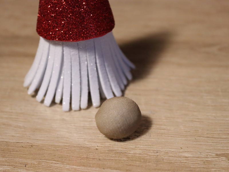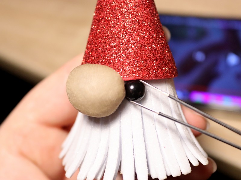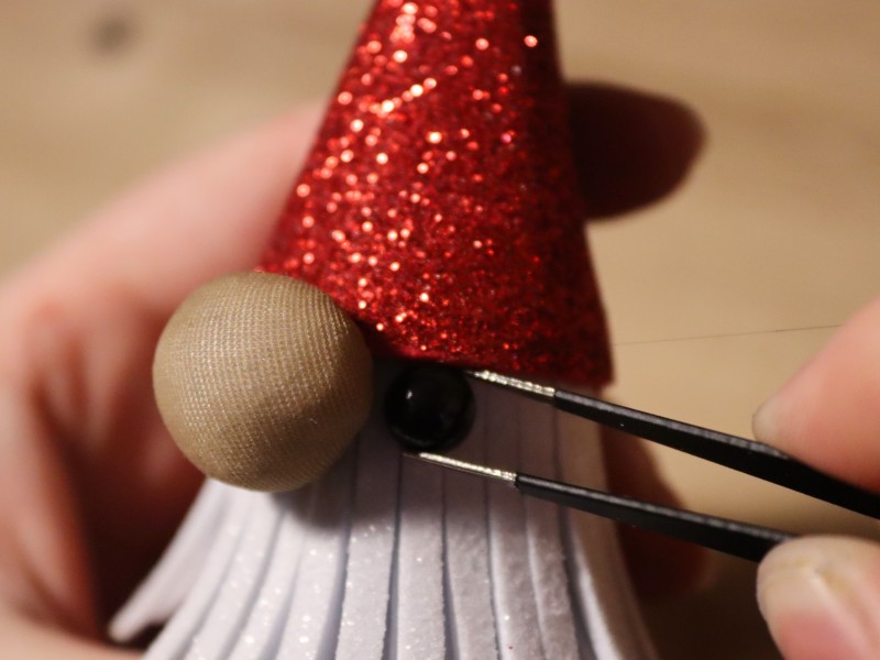 10. Приклеиваем глаза и нос нашему гному.