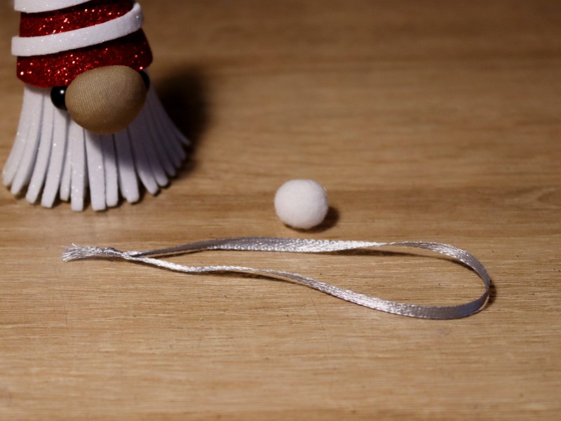 Приклеиваем помпон с петелькой на кончик красного колпака.
