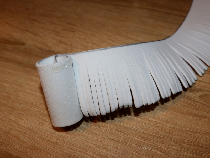 Должен получиться рулончик, вокруг которого мы будем обматывать нашу полоску с надрезами.