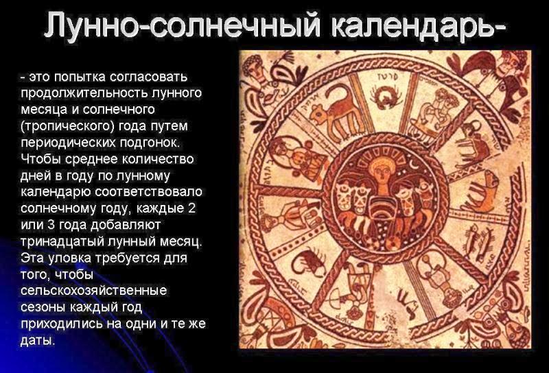 Лунный календарь зародился у древних пастушеских народов, которые вели кочевой образ жизни. Когда же люди перешли к оседлости и начали заниматься земледелием, появилась необходимость определять сроки посева и жатвы. Эти сроки были связаны со сменной времен года и видимым движением Солнца. Потребность предвидеть наступление зимы, весны, лета или осени привела к появлению первых солнечных календарей и более крупной, чем лунный месяц, единицы измерения времени – солнечного года.