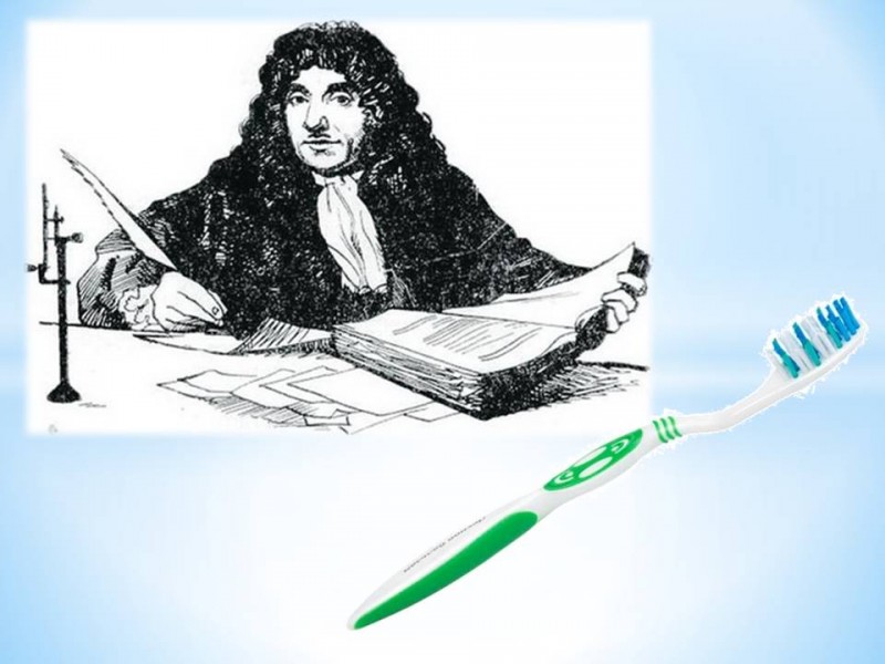 Забота о зубах появилась у человека ещё с древнейших времён. Но цель ухода за зубами была скорее косметическая, чем гигиеническая, ведь человек в те времена понятия не имел о вирусах и микробах. В XVIII веке изобретатель микроскопа голландец Антони ван Левенгук, однажды задумал рассмотреть смыв собственных зубов. Левенгук был поражён: он увидел поле, усеянное большим количеством маленьких двигающихся существ. Это сейчас вы понимаете, что это были микробы. Обнаружив, какое безобразие творится на его зубах, изобретатель тщательно протёр зубы тряпочкой с солью, намотанной на палочку и снова приготовил смыв своих зубов. Под линзой микроскопа микробов не оказалось. Левенгук стал всем рассказывать о своём открытии и рекламировать тряпочку с солью, как средство для чистки зубов. Это и было первой зубной щёткой.