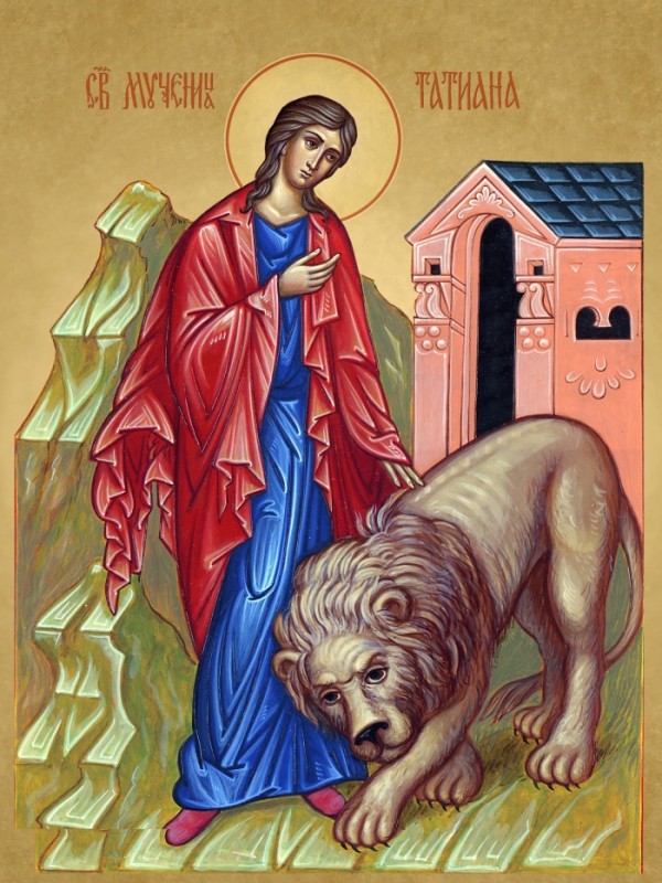 Девушку вывели на арену цирка, выпустили на нее страшного льва, но зверь только ласкался и лизал ей ноги, а когда его пытались увести обратно в клетку, внезапно бросился на одного из мучителей и загрыз его. Тогда Татьяну бросили в огонь, но и он не повредил мученицу. Язычники, приняв ее за чародейку, остригли ей волосы, чтобы лишить ее волшебной силы, и заперли в храме Зевса. В третий раз жрецы готовились принести жертву, но отворив храм, увидели поверженного идола. Все попытки были истощены, и судья принял решение отсечь ей, и ее отцу голову. За веру она была занесена христианами в святцы. По свидетельству историков, среди московских престольных праздников Татьянин день был особенным.