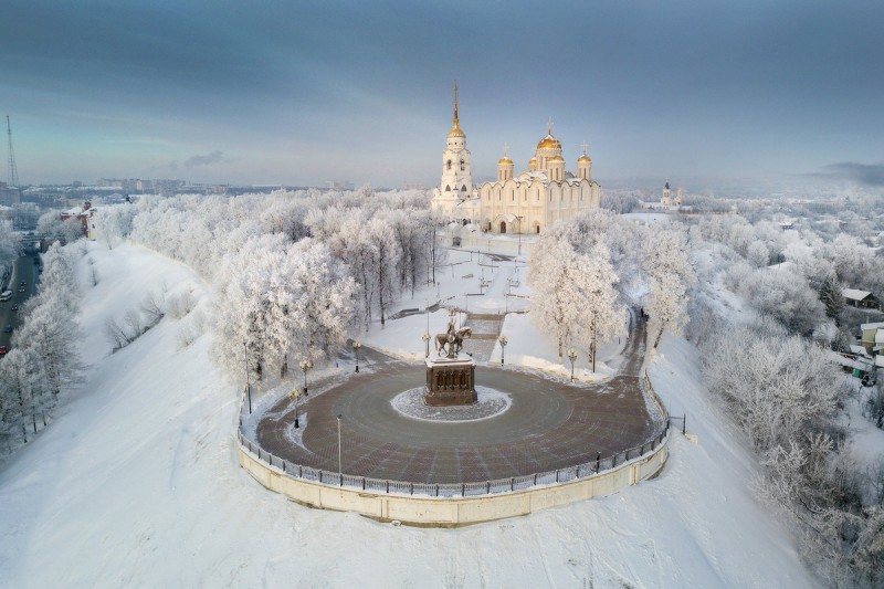 Город Владимир - основал князь Владимир Мономах в 1100 году. Во Владимире сохранился замечательный памятник старины – Золотые ворота, построенные в 1164 году. Во времена монголо-татарского ига, горожане боясь, что враг может унести створки, спрятали их, да так, что до сих пор остается загадкой дальнейшая судьба этих ворот. По одной из версий, ворота были утоплены в реке Клязьме. Успенский собор, один из немногих храмов в России, где сохранилась роспись работы Андрея Рублева. В честь выдающегося иконописца во Владимире установлен бронзовый памятник.