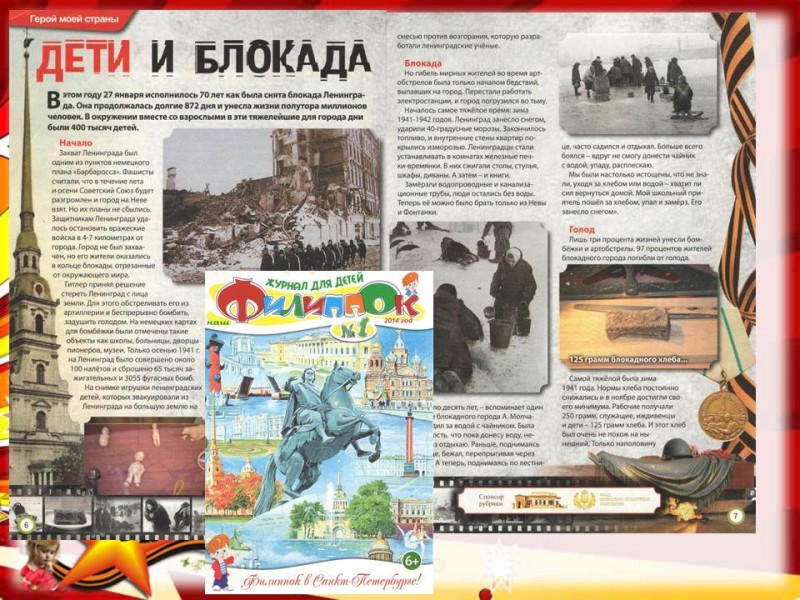 Дети и блокада // Наш Филиппок. – 2014. — № 1. – С. 6-9. – (Герой моей страны).