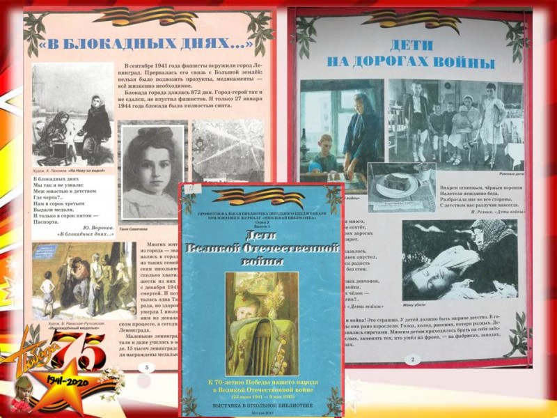 Дети Великой Отечественной войны : к 70-летию Победы нашего народа в Великой Отечественной Войне, (22 июня 1941 – 9 мая 1945) / сост. М. С. Андреева, М. П. Короткова. – Москва : Русская школьная библиотечная ассоциация, 2015. – 32 с. : 8 л. цв. ил. – (Выставка в школьной библиотеке, Вып. 1).