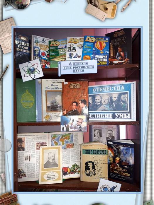 В библиотеке № 5 проводится неделя «Да здравствует российская наука!». К этому дню оформлена книжная выставка «Отечества великие умы».
