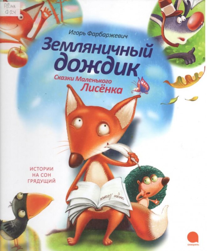 Фарбаржевич, Игорь. Земляничный дождик. Сказки Маленького Лисенка : [для чтения взрослыми детям] / Игорь Фарбаржевич ; [ил. И. Августинович]. - Санкт-Петербург : Акварель : Команда А, 2013. - 61, [3] с. : ил. - (Истории на сон грядущий).