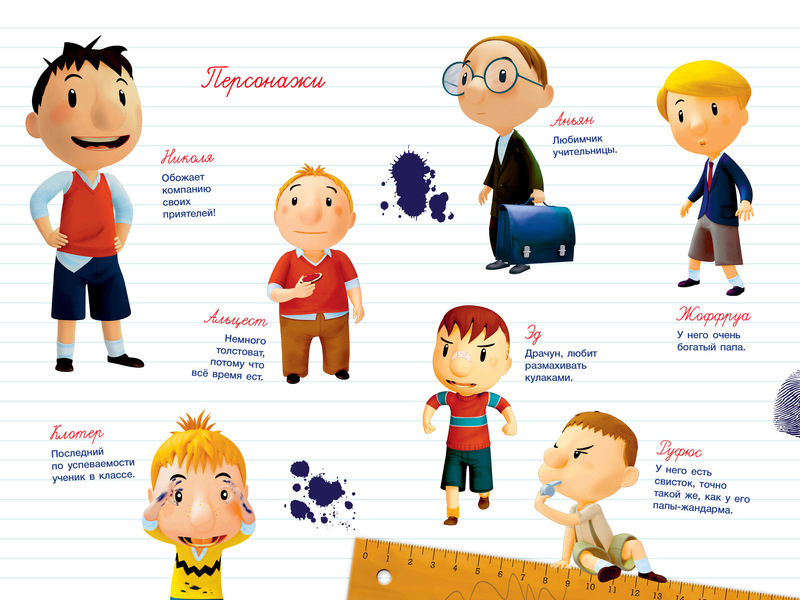 Николя - обычный мальчик. Действие происходит во Франции в середине 1960-х гг. XX века, то есть до реформы 1974 года, когда мальчики учились отдельно от девочек, а четверг был выходным днём для школьников. Он учится в начальной школе во Франции, и он самый настоящий шалун. Пойти в кино вместо школы, научить друга-англичанина всяким обзывательствам (впрочем, вполне невинным), случайно разбить окно мячом - это с радостью. Но при этом Николя умеет дружить, любит маму с папой, да и сердце у мальчика доброе и отзывчивое. Эдакий Дениска из рассказов Драгунского на французский манер. Так что Николя и его одноклассники российским школьникам понравятся: интересы-то у них общие. А пока ребенок будет читать о веселых приключениях озорников, у родителей будет время отдохнуть от его шалостей.