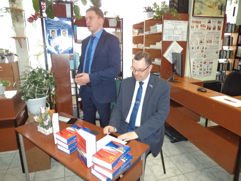 В Библиотеке №1 им. Н.В. Санеева прошла встреча депутатов Законодательного Собрания Камчатского края Агеева Владимира Александровича и Кирносенко Анатолия Владимировича с читателями, приуроченная ко Дню камчатского парламентаризма. Первая сессия Законодательного Собрания Камчатской области начала работу 11 апреля 1995 года, открыв тем самым новую страницу в истории Камчатки. Сессия Законодательного Собрания приняла Закон Камчатского края "О внесении изменения в статью "О праздниках и памятных датах Камчатского края".