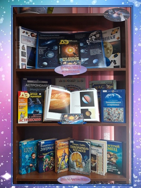 Для широкого круга читателей библиотека № 5 провела цикл мероприятий, объединенных одной темой «Книга – путь к звездам»: книжные выставки, беседы и обзоры литературы о космосе, о Ю. Гагарине, об ученых и изобретателях космической техники. Юные читатели смогли проверить свои знания в увлекательной «Космической викторине».