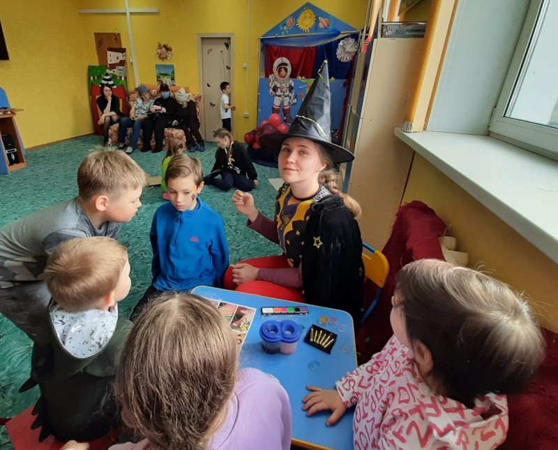 Продолжилась праздничная программа посещением студии аквагрима «Космогрим». Всем желающим было предложено выбрать себе понравившейся рисунок для нанесения космического узора на кожу.