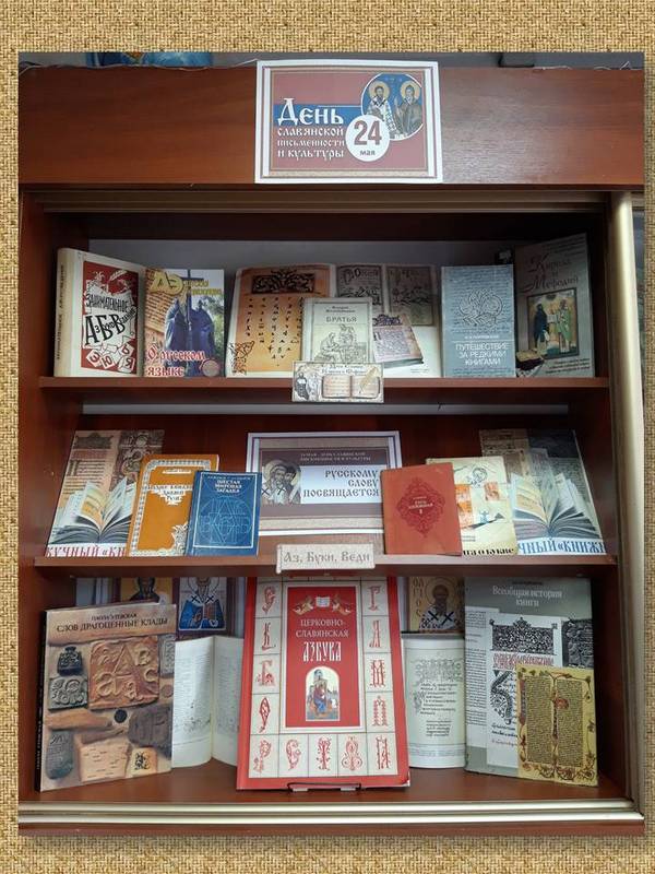 Библиотека № 5 к этому празднику подготовила книжную выставку «Аз, Буки, Веди…», на которой представлена литература об истории письменности, о жизни и деятельности великих учителей Кирилла и Мефодия.