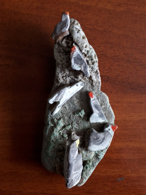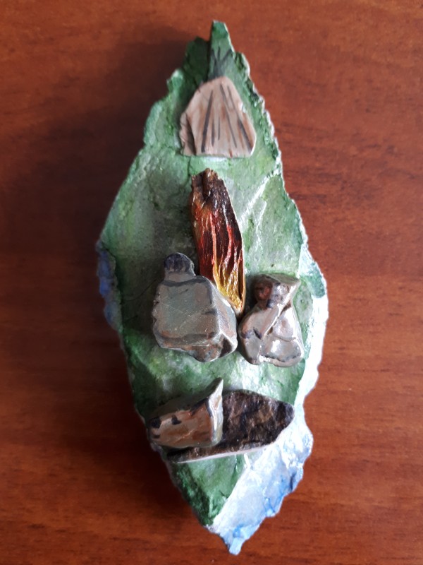 Все фигурки созданы из природных материалов: камчатский камень, ракушки, водоросли, костяные элементы. Как декор использован бисер и обточенное океаном стекло. Неимоверный полёт души, творчества, любовь к родному Камчатскому краю, к каждой травинке, дереву просматривается в каждой работе.