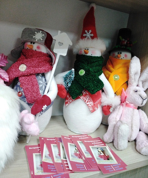 Среди читательниц нашей библиотеки много рукодельниц, творением рук которых можно восхищаться бесконечно. На ярмарке были представлены новогодние сувениры и декор ручной работы в различных техниках. Это и авторские куклы нашей читательницы Юлии Проничевой, которая уже неоднократно принимала участие в выставках в нашей библиотеке.