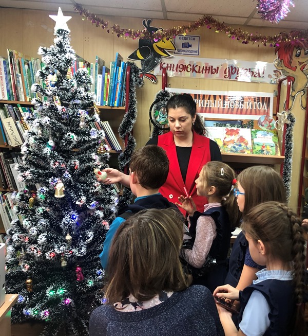 Праздничный тон задавал обзор выставки «Новогодний калейдоскоп», где были представлены книги и журнальные статьи о забавных и удивительных новогодних традициях. Общий интерес неизменно привлекала книга «Дед Мороз, Йоулупукки, Бефана и другие», из которой дети узнавали о «соратниках» Деда Мороза – добрых духах и символах зимних праздников в культуре других народов.