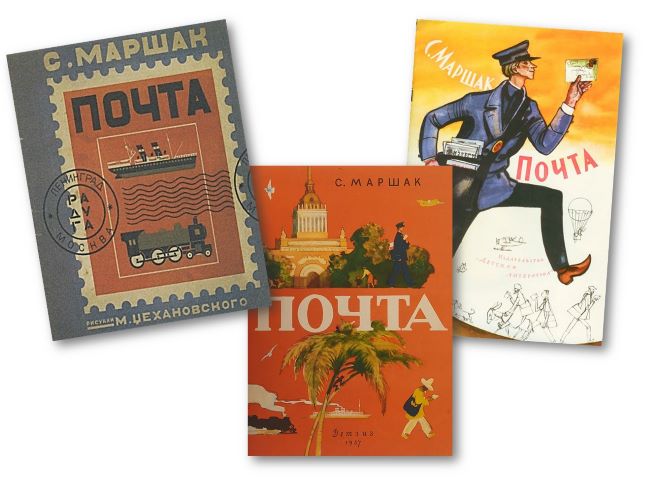 Стихотворение «Почта» – это скорее маленькая поэма. Сюжет этого произведения несложен: догоняя адресата, письмо облетает почти весь земной шар, и вместе с ним путешествует и маленький читатель: из Ленинграда – в Берлин, из Берлина – в Лондон, из Лондона – в Бразилию, из Бразилии – вновь в Ленинград. Представление о работе почтальона поэт дает не по основным признакам профессии, а в отдельных красочных и запоминающихся деталях, которые пробуждают фантазию ребёнка и заставляют его воссоздать образы людей, стран, городов.